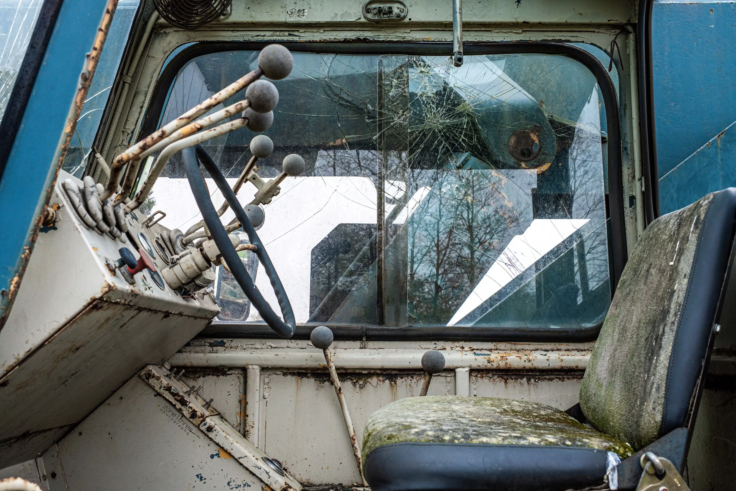 Then, after years of hard use and purpose, transporting heavy loads, operating on construction sites, used for harvesting crops and other farming needs they are now sitting in a junkyard victim to collecting dust, spiderwebs, weathering, corrosion and ultimately nature simply taking them over. They are truly beautiful disasters.